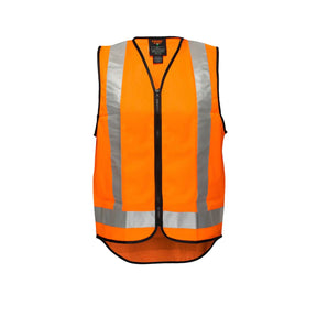 Tough plastic zipper closure. HiVisTex reflective tape in cross back configuration including tape on the tail.
